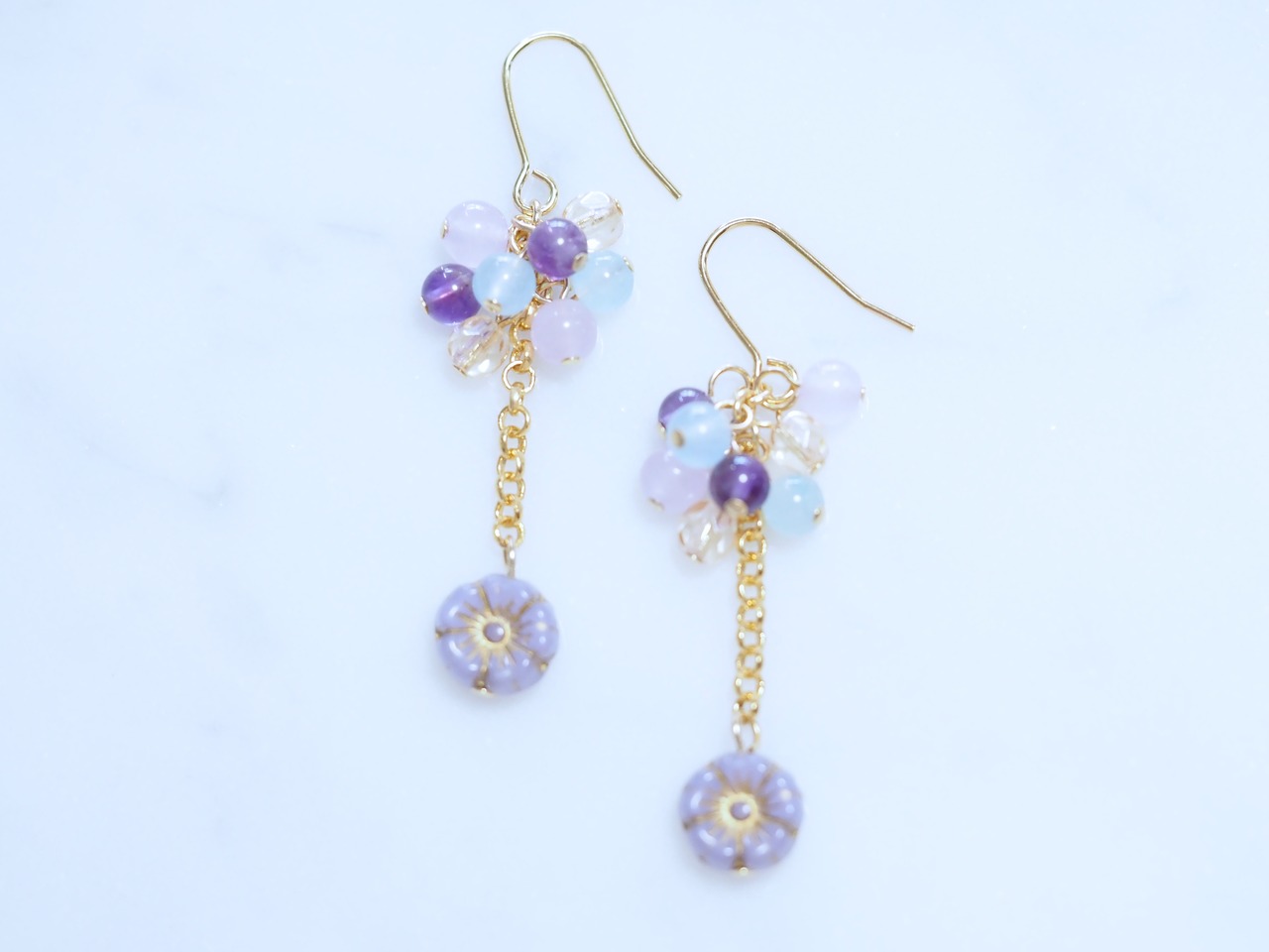 天然石 アメジスト 色翡翠 チェコフラワー 紫陽花ピアス/イヤリング P0274 E0274
