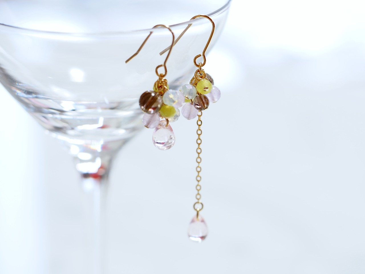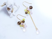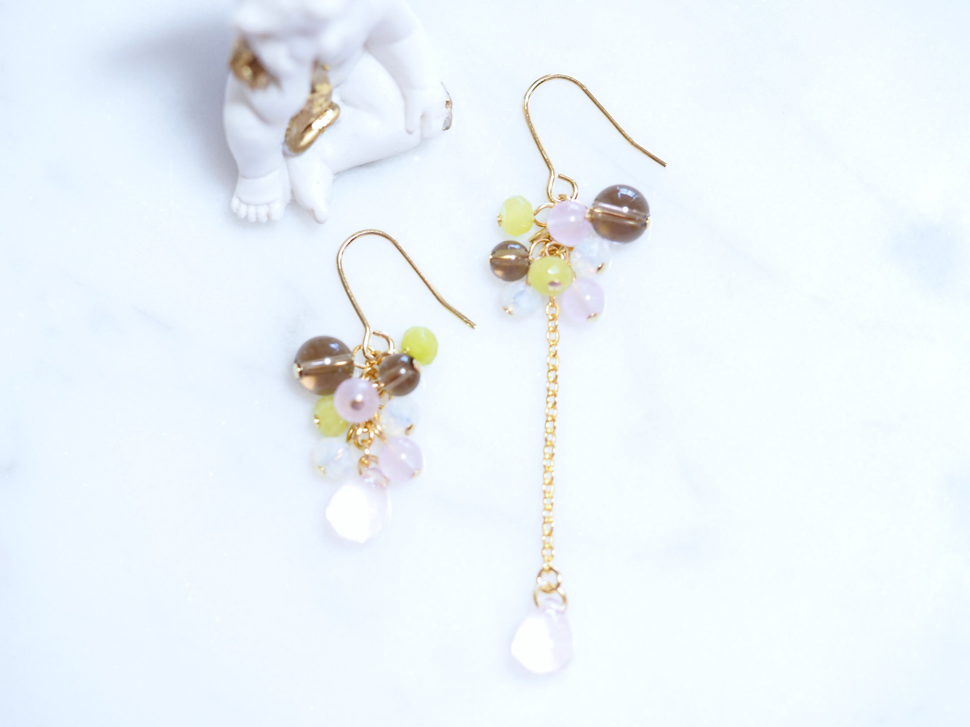 天然石 スモーキークォーツ カラー翡翠(ジェード) チェコガラス 大人女子 桜 ピアス/イヤリングP0285/E0285