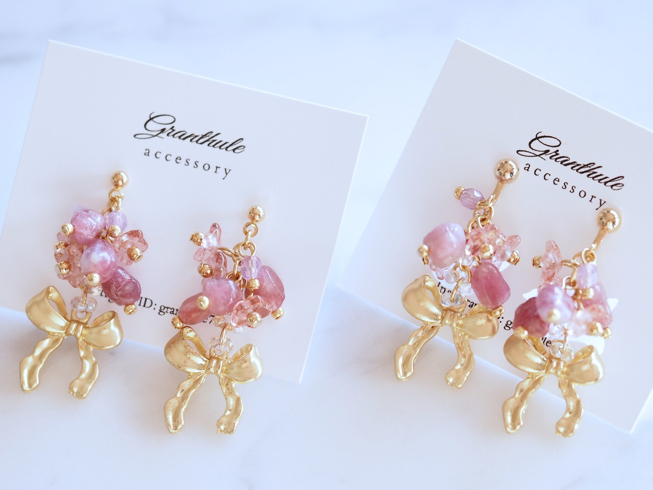 少しだけ研磨されたナチュラルな仕上がりが、柔らかなピンク色を耳元に添えます。